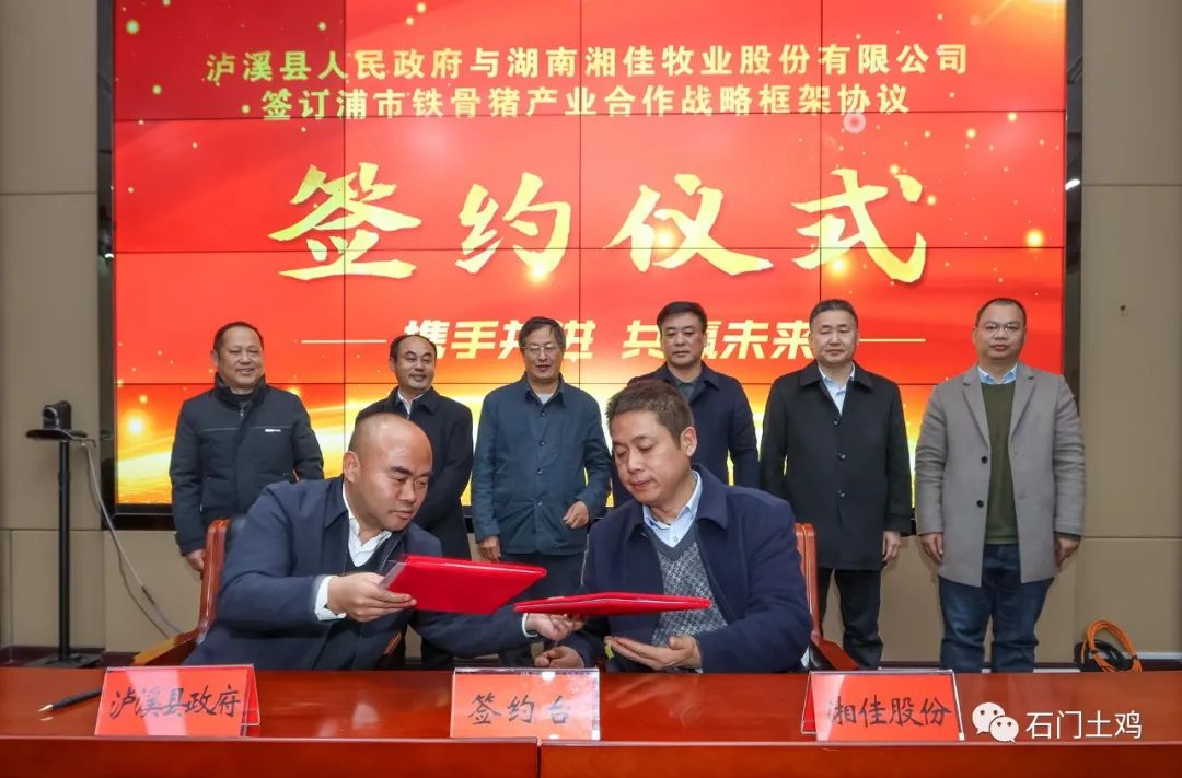 2月8日,湖南湘西自治州瀘溪縣人民政府與湖南湘佳牧業股份有限公司就做大做強該縣浦市鐵骨豬產業,簽訂合作戰略框架協議。湖南農大印遇龍院士工作團隊、瀘溪縣人民政府、湘佳股份三方將共享盛舉,精誠合作,讓這一養在深山人未識的“黑豬極品”走出湘西。